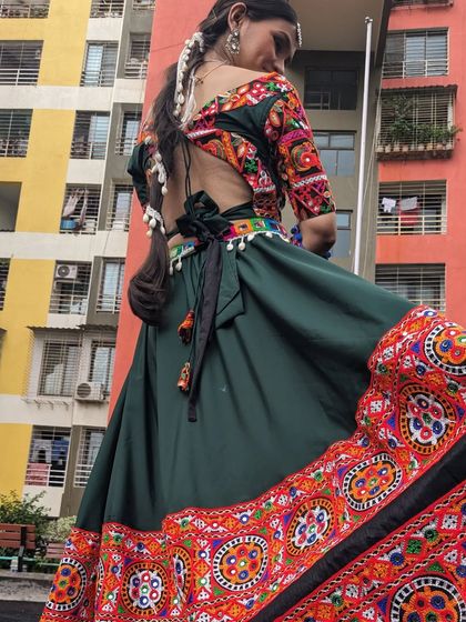 Get ready for Navratri, Haldi, or any family puja with my collection of traditional outfits. I offer vibrant chaniya cholis with full gher for garba, elegant outfits for haldi functions, and classic Navvari sarees, complete with jewellery for rent.