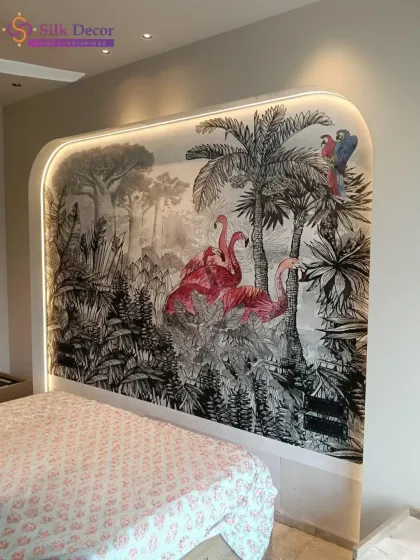 Escape to paradise with our collection of nature-inspired wallpapers. We offer a wide variety of designs, from lush, vibrant jungle scenes with exotic birds to soft, pastel botanical prints. Each mural is custom-sized to create a seamless tropical escape in any room.