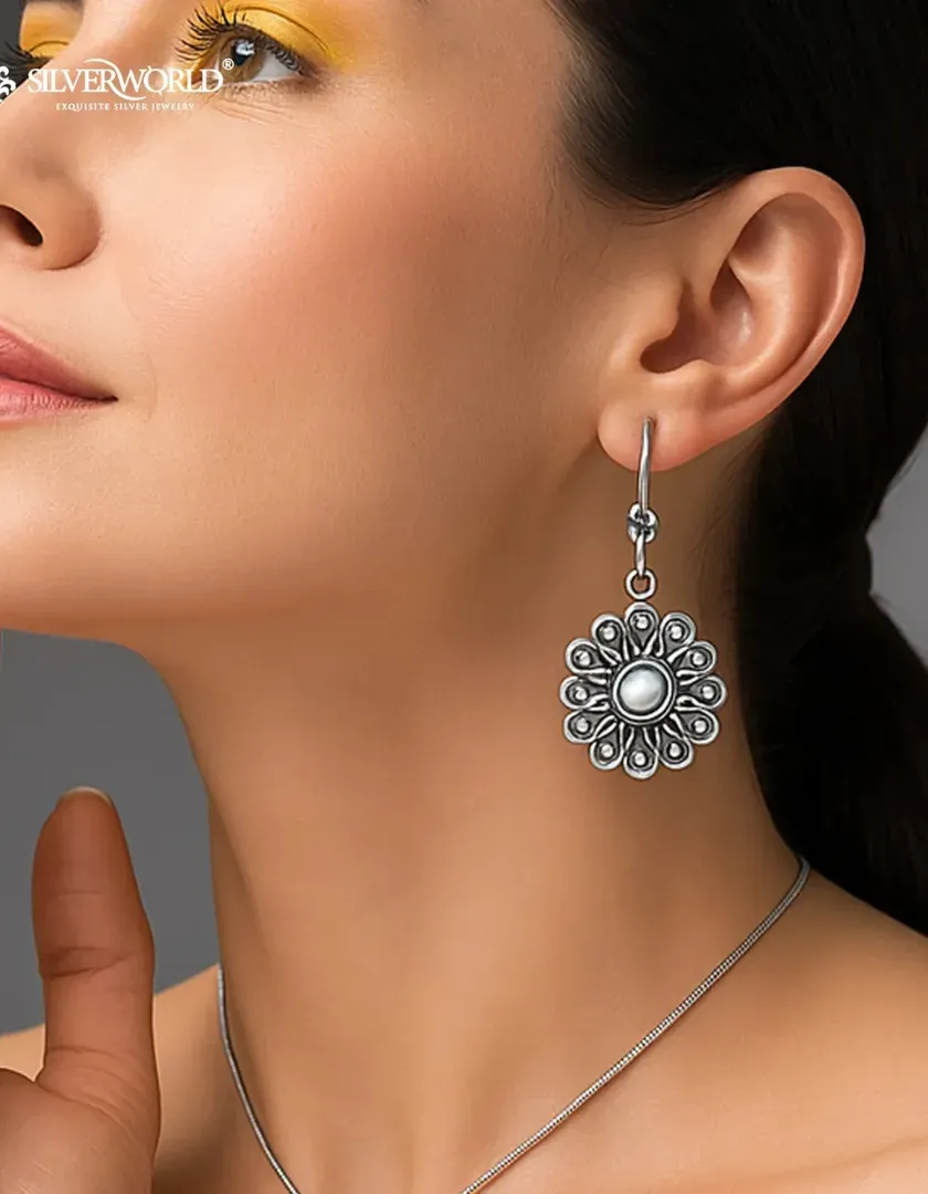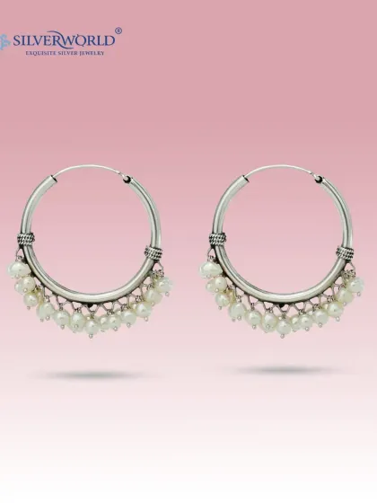 Explore our heritage collection of silver jhumkas and ethnic earrings, a staple of Indian jewelry. We offer designs ranging from classic pearl ghungroo hoops to oxidized floral drops and intricate hand-carved peacock motifs.