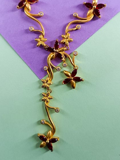 Experience the richness of gold with the purity of silver in our exclusive gold-plated collection. These pieces feature intricate designs, often studded with ruby and other precious stones, offering a regal look for special occasions.