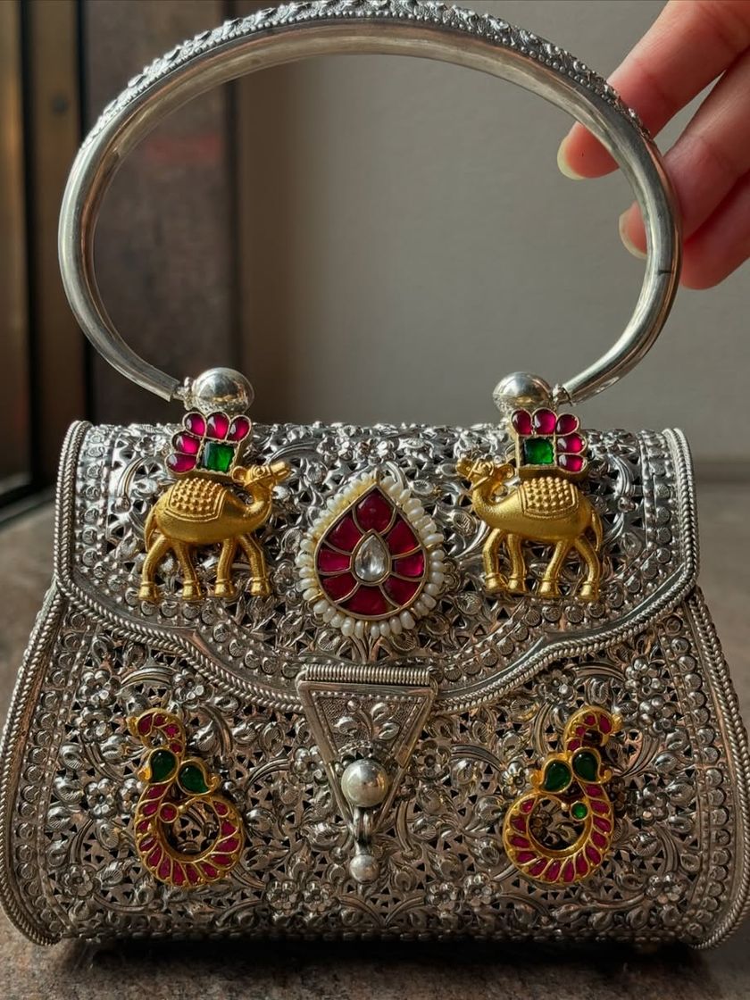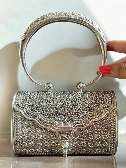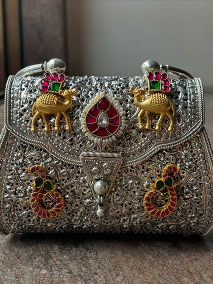 Make a bold statement with our exclusive collection of silver handbags and clutches. We offer everything from intricately carved pure silver clutches to fusion designs that blend silver with gold plating and colourful motifs, and we also take customisation requests to create a piece that is uniquely yours.