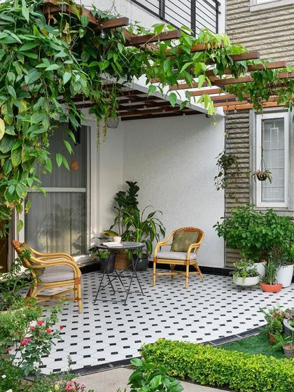 - Terrace/Balcony: Hardscaping with patterned tiles, wooden trellis/pergolas, and weather-proof outdoor benching.