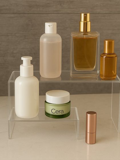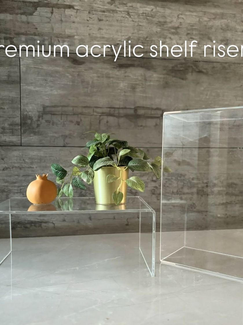 To create a truly seamless look, I offer my own line of premium, custom-made acrylic organizers. These sleek and sturdy shelf risers and containers are designed to fit your space perfectly, adding vertical storage and a touch of luxury to your wardrobe, kitchen, or vanity.