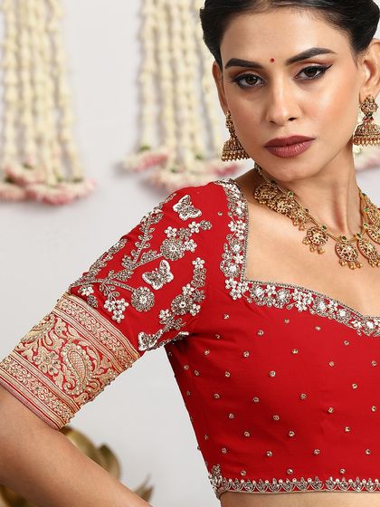 - I’m obsessed with artisanal embroidery details - zari, sequins, threadwork, you name it. The blouse isn’t just an add-on, it’s a statement with cool cuts and heavy work.