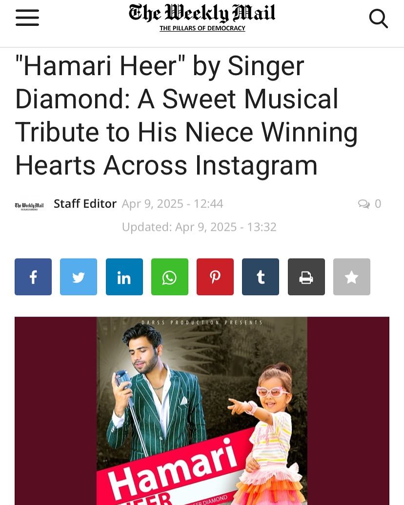 I'm grateful for the love and recognition my music has received. Here are a few articles and press mentions from publications like The Weekly Mail, Hindustan Metro, and UNI. It's an honor to have my work appreciated by industry legends like Sonu Nigam and Shaan.