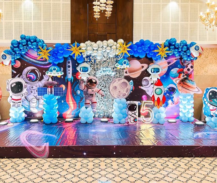 From the wild jungle to outer space or the racetrack, I design immersive adventure themes. These setups feature large-scale backdrops, themed flooring, and lots of props to make your child feel like they are part of the action.