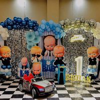 For your little boss, I create a fun and stylish Boss Baby setup. This theme includes multiple character cutouts, custom backdrops, and can be personalized with marquee letters for your child's name.