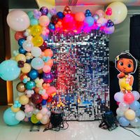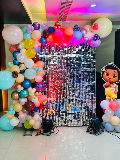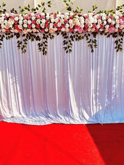 Every great party starts with a stunning backdrop. I offer everything from sparkling shimmer walls for a glamorous photo corner to elegant floral arrangements for ceremonies like a Namkaran Sohala.