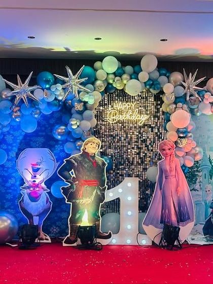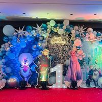 I create a magical winter wonderland with my Disney Frozen theme. Using cool blue and silver balloons, snowflake details, and character cutouts of Elsa, Anna, and Olaf, I make the party feel like Arendelle.