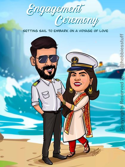 - Subjects: Detailed caricature of a couple with custom chemistry/interaction.