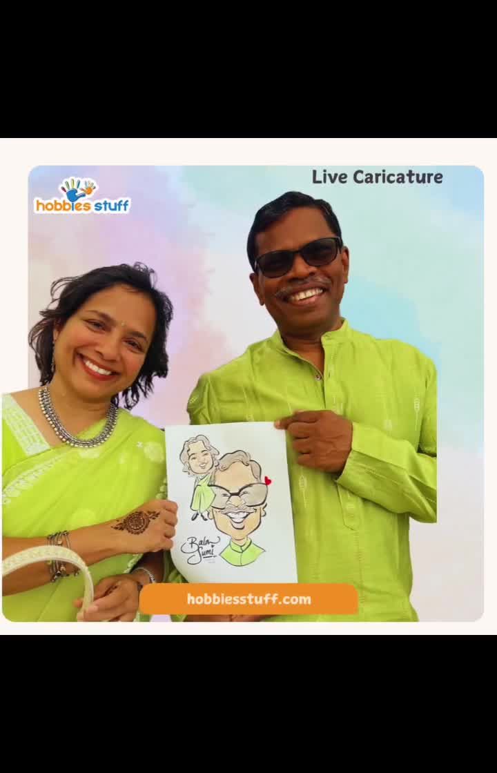 Your wedding should be unforgettable for your guests too. I provide live entertainment that doubles as a personalized party favor, creating 'hasyache karanje' (fountains of laughter) at your sangeet, reception, or engagement party. I can create fun caricatures for couples, families, and individual guests.