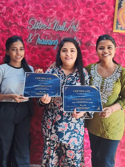 Namaste! Hum Sangeeta aur Pooja, Sister's Nail Art & Training Studio se. Rohini mein chota studio hai, sapne bade hain. Shuruat hobby thi, ab profession ban gaya hai. Haath thak jaate hain, magar client ki khushi sab thakan mita deti hai. Humare liye sabse important hai ki har client ko yahan ghar jaisa feel ho. Ab training bhi dete hain, taaki dusre bhi apna safar shuru kar sake. Khushi milti hai jab student apna kaam shuru karte hain.