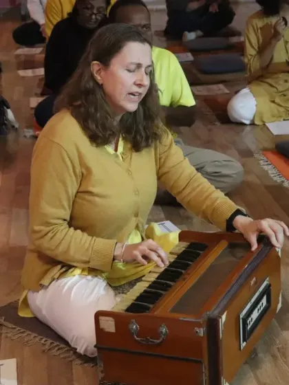We run free weekly satsangs with meditation and chanting, offer beginner meditation courses, hold themed community yoga classes, and celebrate festivals together so anyone can join in for practical spiritual connection and community.