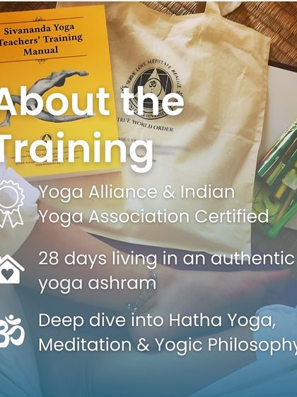 We offer a 28-day, residential 200-hour Hatha yoga teacher training with ashram living, daily routines, and direct teaching in the Sivananda tradition, leading to Yoga Alliance certification.