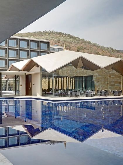 - The Lotus Cafe: A lotus-shaped roof, glass walls, and reflections on water bring in poetry and calm.