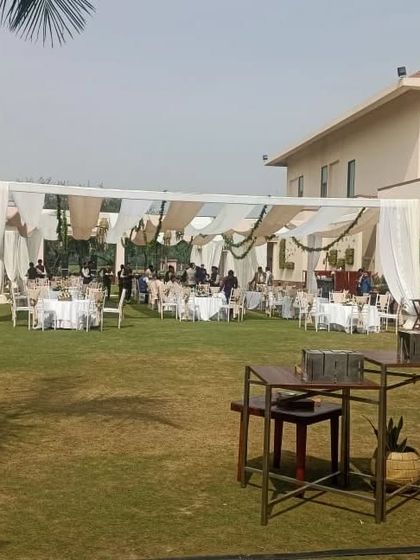 For large gatherings, I provide robust and elegant tenting solutions like German hangers that can be fully customized. I handle the complete setup, including flooring, fabric draping, and arranging seating layouts for dining and lounging.