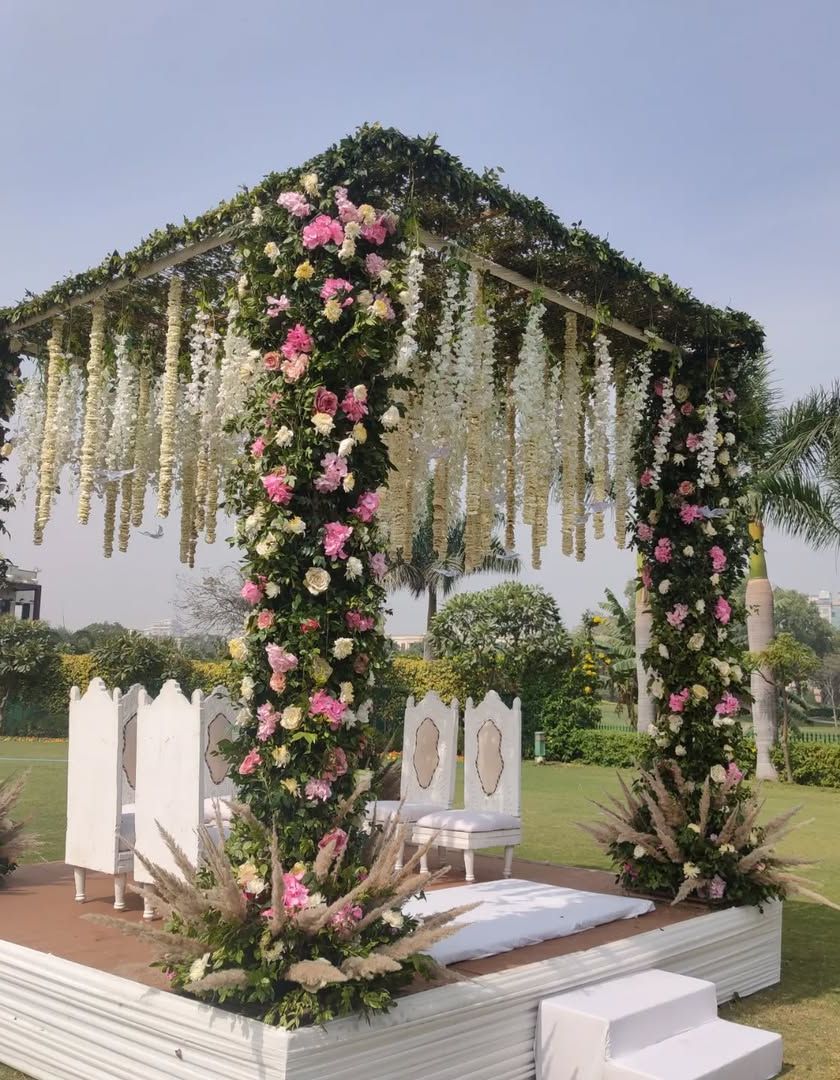 This is the centerpiece of your wedding, and I ensure it's breathtaking. I design and build a variety of mandaps and stages, from traditional floral structures for outdoor pheras to grand, opulent stages for indoor receptions.