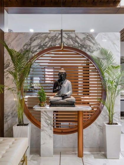 I design tranquil and beautiful pooja units that blend seamlessly with your home's modern aesthetic. These sacred corners are crafted with respect for tradition, featuring elements like backlit jali panels, intricate carvings, and integrated storage for prayer essentials.