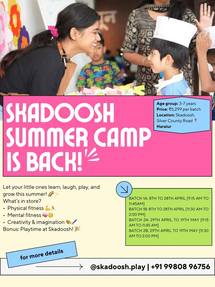 Skadoosh was born from a simple idea: to create a vibrant, safe, and happy place for kids to play and for parents to relax. We are a team of passionate individuals, including parents, dedicated to bringing back the joy of physical play and creating a community hub in Haralur.