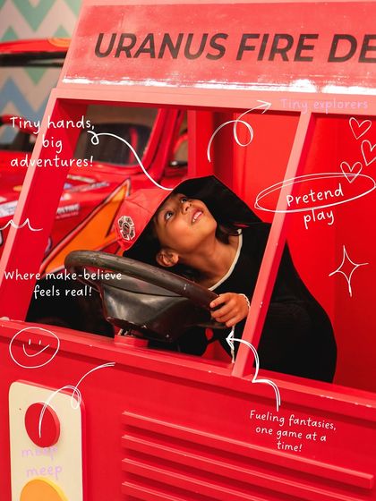 - Pretend play zones where kids run a mini café, put on a fireman hat, or build giant towers