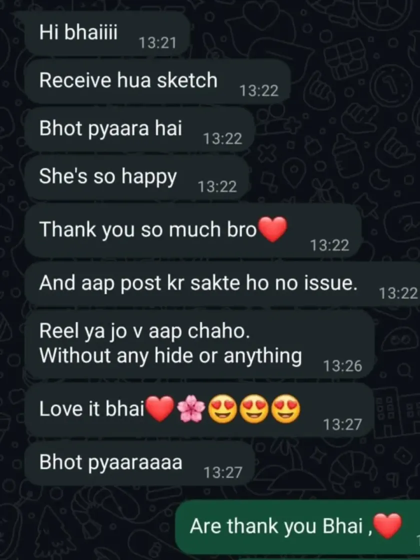 The best part of being an artist is seeing the joy my work brings to others. Here are a few kind words and reactions from clients who have commissioned sketches from me. Your happiness is my biggest motivation.