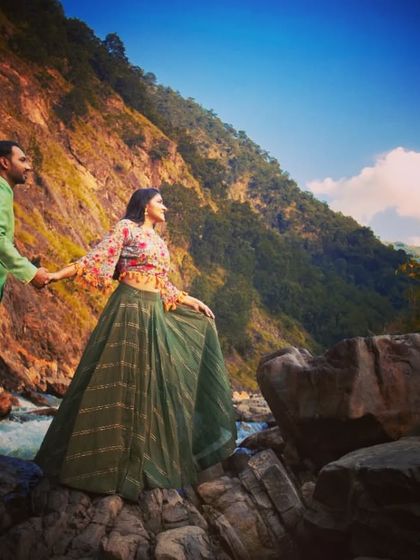We love taking our couples to beautiful natural spots. We do a lot of pre-wedding shoots in places like Rishikesh and Uttarakhand, using the mountains, rivers, and forests to create stunning backdrops for your love story.