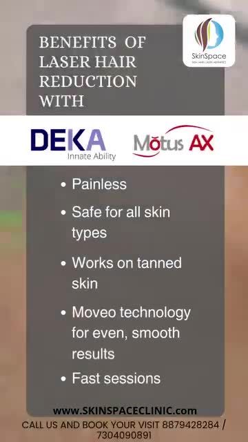 We use the USFDA-approved DEKA Motus AX, a breakthrough in laser technology. Its unique Moveo handpiece ensures a completely painless experience, making it safe and effective for all Indian skin tones, including tanned or sensitive skin.