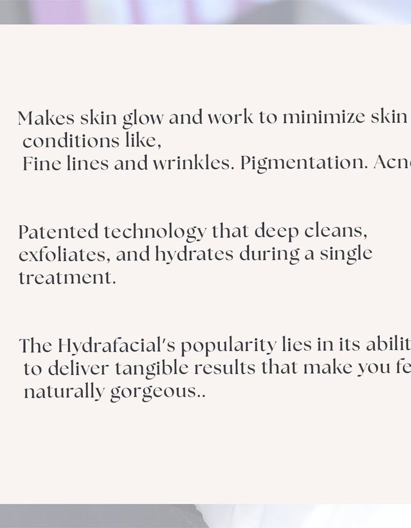I offer a range of medical-grade facials and peels that go beyond what a typical spa can provide. Using advanced systems like Hydrafacial Syndeo and clinically formulated ZO Skin Health products, these treatments are designed to deep clean, exfoliate, hydrate, and address specific concerns like acne or pigmentation.