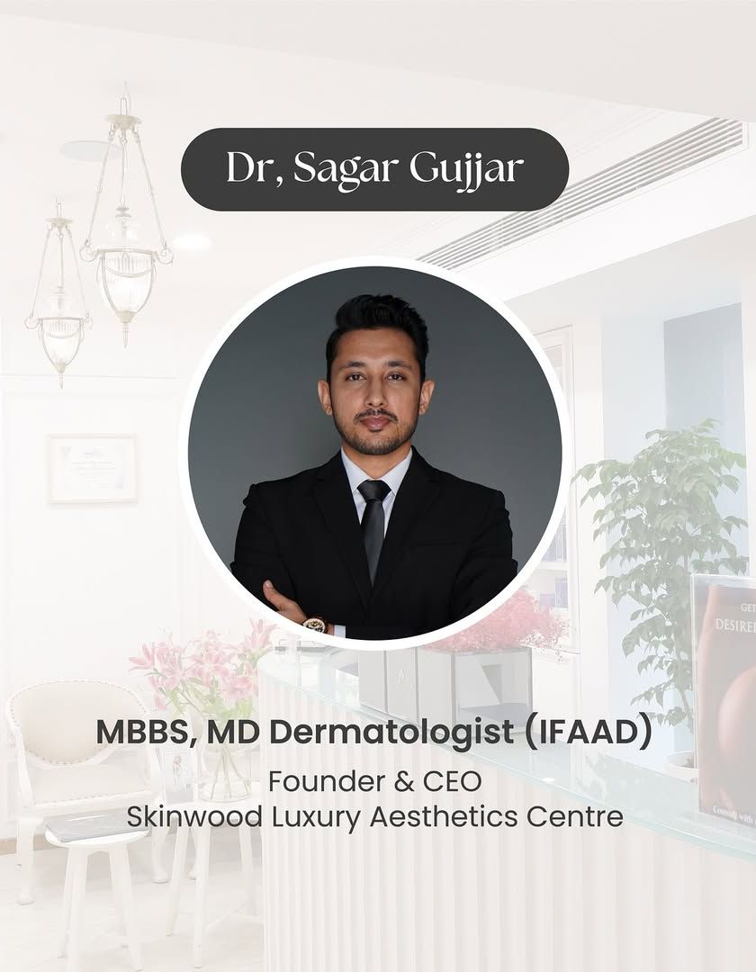 Welcome to Skinwood. I am Dr. Sagar Gujjar, an MD Dermatologist and the founder of this clinic. I personally perform every treatment, ensuring you receive the highest standard of care in a luxurious and comfortable environment.