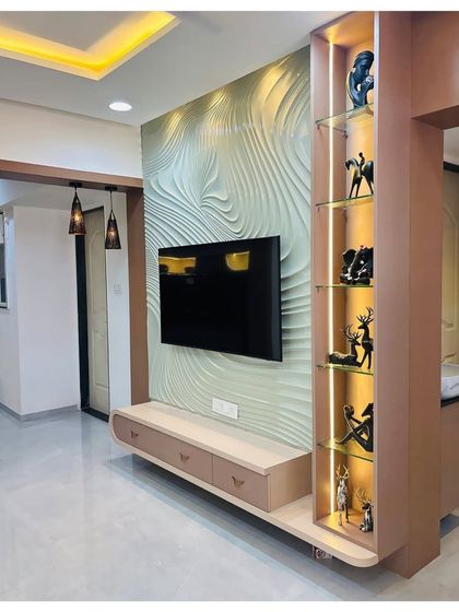 Your TV unit should be the star, not just a shelf. I do floating TV console ideas, full wall panels, and keep cables out of sight. Marble-finish entertainment unit backdrops, wood textures, and LED backlighting set the mood. You get a space that feels premium, not basic.