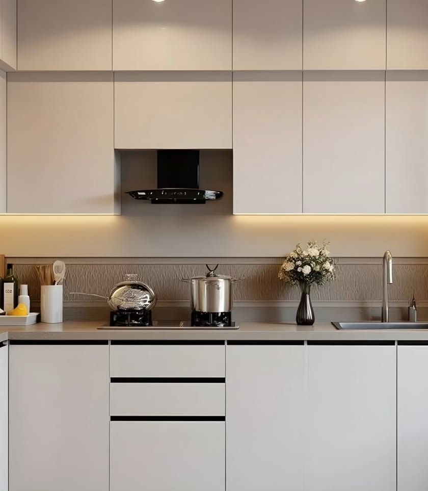 This collection showcases our expertise in creating clean, contemporary kitchens. We focus on minimalist aesthetics, featuring handle-less cabinets, high-gloss finishes, and neutral color palettes to create spaces that are both stylish and timeless. These designs prioritize functionality and an uncluttered look for modern living.
