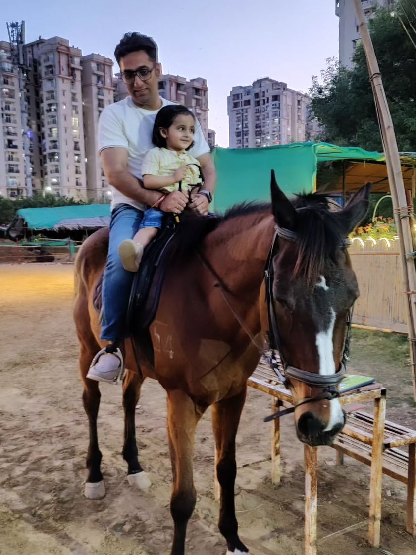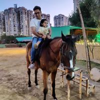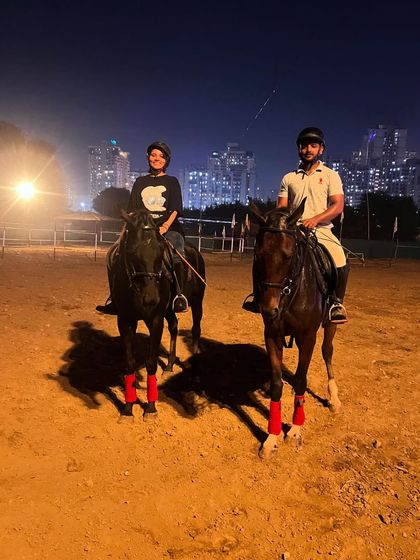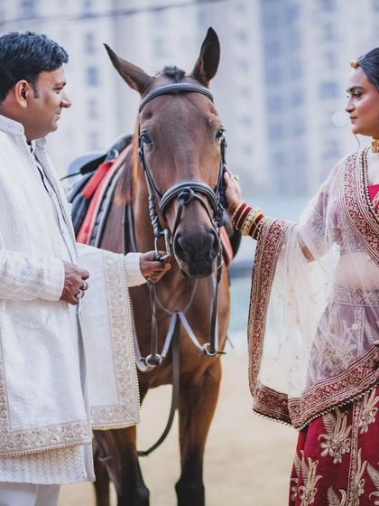 We offer a unique photoshoot location that combines a spacious sand riding arena with a backdrop of the Noida city skyline. Our stables are clean, modern, and well-maintained, providing a rustic setting for more intimate portraits. All our horses are well-cared-for, healthy, and part of our club's family.