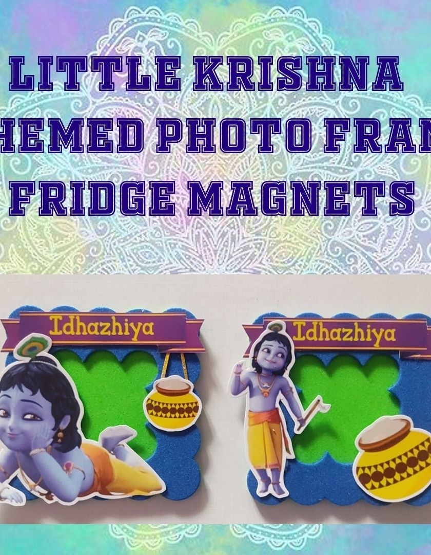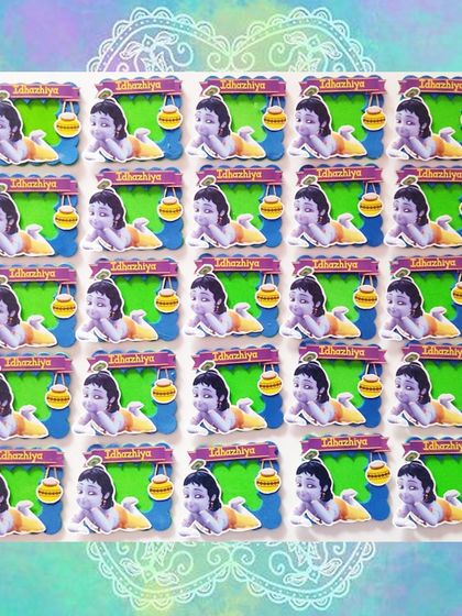 I specialize in creating personalized gifts that match your event's theme perfectly. From photo frame fridge magnets featuring characters like Little Krishna to custom photo rakhis for festivals, I can help you create unique keepsakes. These items are perfect as return gifts for birthdays, poojas, and other special occasions.