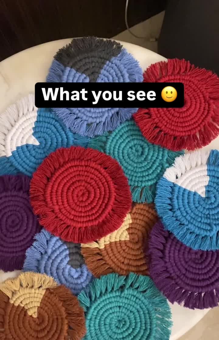 My handmade decor is not just beautiful, it's practical too. I create spiral coasters to protect your tables, cute crochet baskets for storage, and stylish curtain tie-backs, all made from high-quality cotton yarn in colors of your choice.