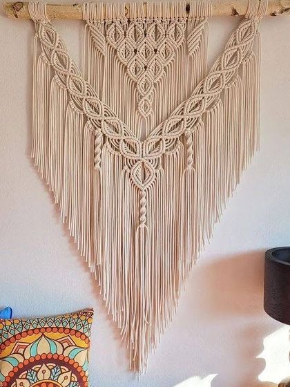 I make boho cotton wall hangings with intricate patterns and long fringes. My daughter once called my twisty design the "DNA wala design" (DNA look), and honestly, it stuck. You’ll also find macrame-framed mirrors, shapes like stars and moons, and even a wise old owl planter for some good luck.