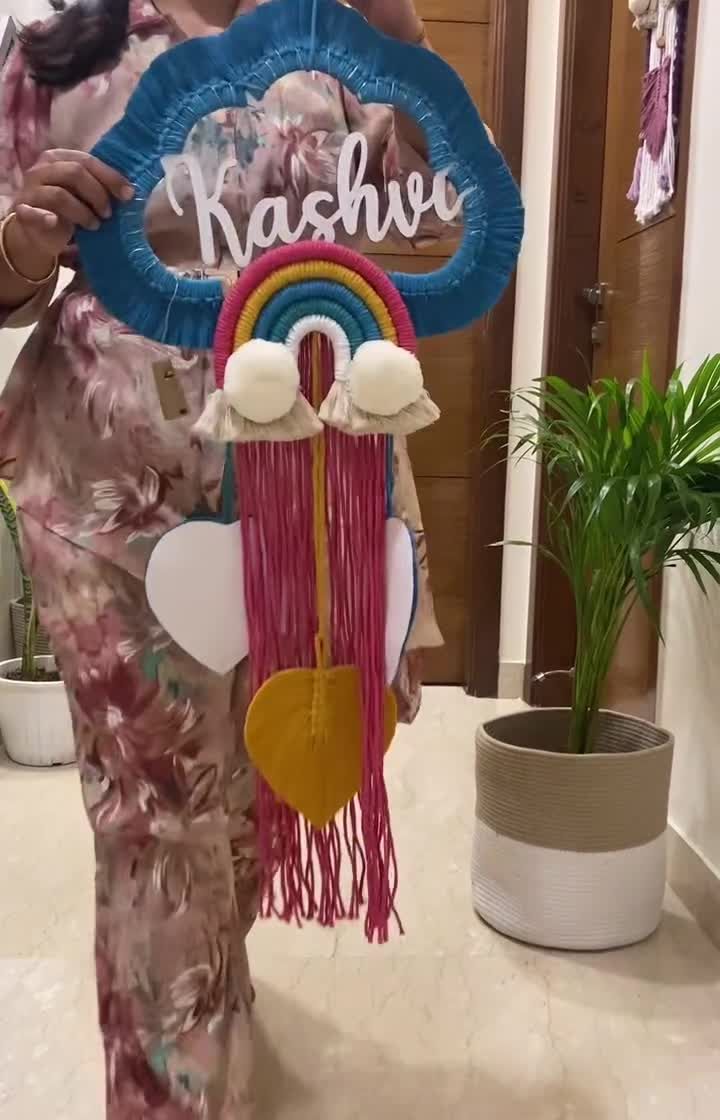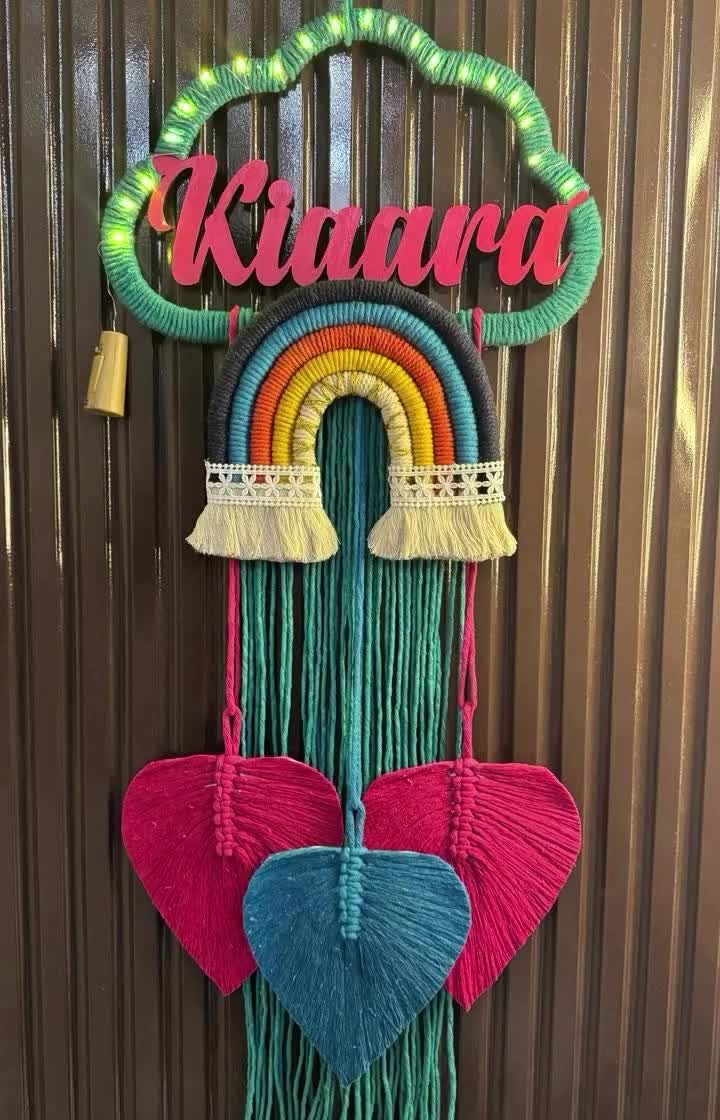 I handcraft these cheerful nameplates to bring a personal touch to any child's room or nursery. Each piece is fully customizable, from the name and color palette to fun additions like rainbows, clouds, hearts, stars, and even battery-operated fairy lights for a soft glow.