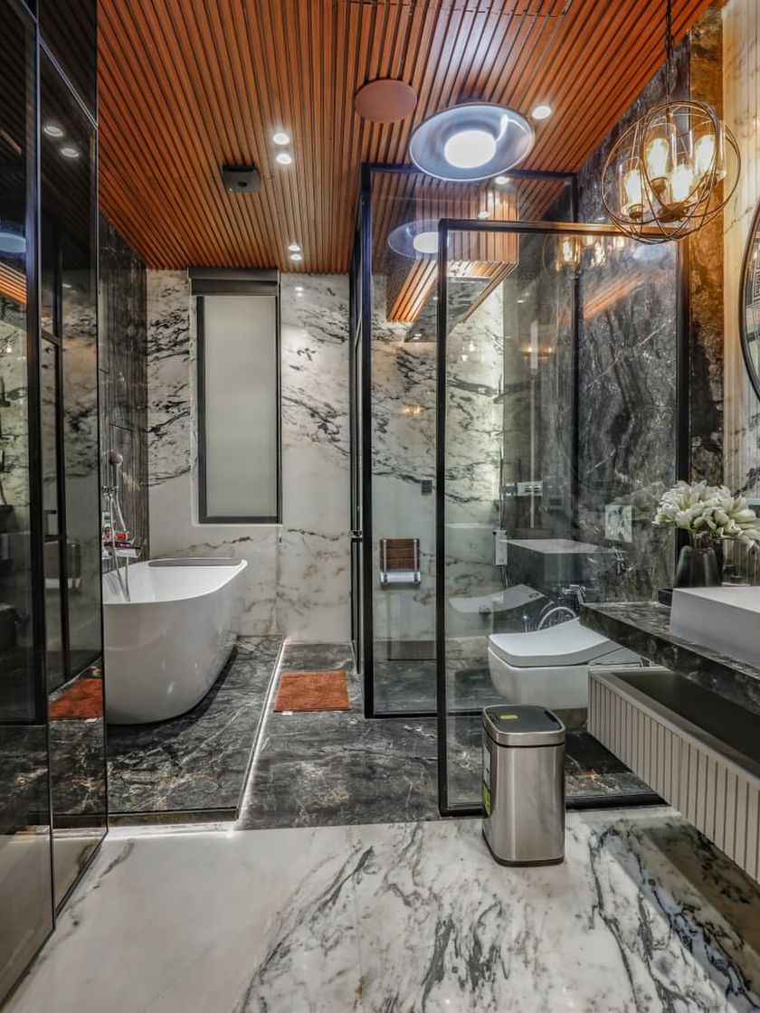 I believe functional spaces like bathrooms and kitchens should be as beautifully designed as any other room. This gallery highlights my work in creating custom kitchens and luxury bathrooms, focusing on unique materials, innovative lighting, and bespoke features.