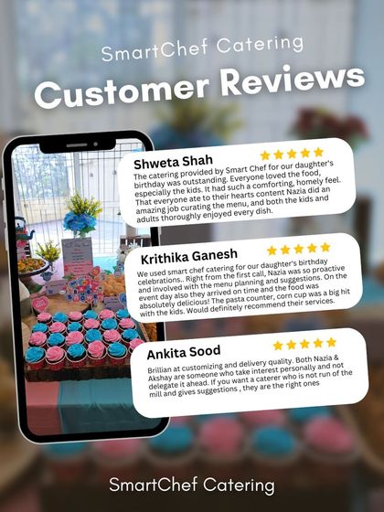 Hey, we’re Nazia and Akshay, the duo behind Smart Chef Catering. Food’s our love language, honestly. Give us your wildest party idea, and we’ll run with it—especially if it’s a kid’s theme like Avengers or Frozen (those grazing tables, pure magic). We once made a nervous birthday girl super happy, and that’s what keeps us going. If you want food that people remember, we’re all in. Our clients’ smiles? That’s the real deal for us.