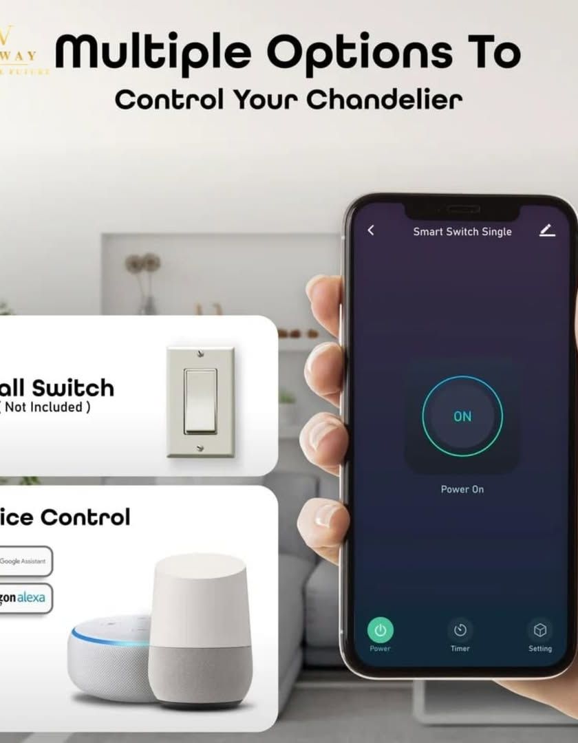 My lighting collection is not just about beauty; it's also about smart technology. Many of my chandeliers and lamps come with features like 3-color mode (warm, natural, and cool white), app and remote control, and even voice control with Google Assistant and Amazon Alexa.