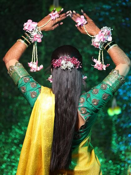 I take care of your makeup, hair, and saree draping for every wedding event, with different looks for each function and a focus on Maharashtrian style.