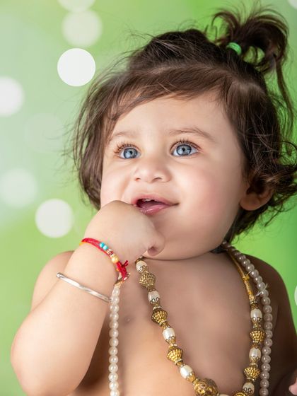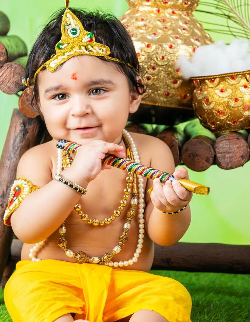 Celebrate Janmashtami or simply your love for stories of Kanha with a special photoshoot. I dress up your little one as Krishna or Radha, complete with a flute, peacock feather, and pots of butter. These sessions are always full of smiles and divine cuteness.