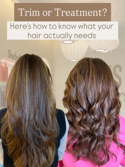 We start with a scalp check, then use pro-grade treatments like Olaplex or K18 to fix damage, clear buildup, and hydrate your hair based on what it actually needs.