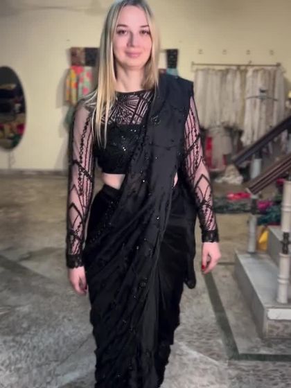 - Texture: Features machine embroidery or tonal texture (black-on-black aesthetics) rather than heavy hand-done Zardosi.