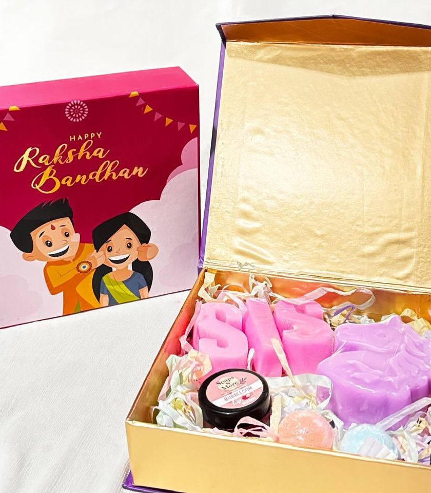 Make Raksha Bandhan extra special with our thoughtful hampers for brothers and sisters. We offer personalized 'BRO' and 'SIS' letter soaps, skincare sets, and cute hampers for kids, all beautifully packaged to celebrate your unique bond.