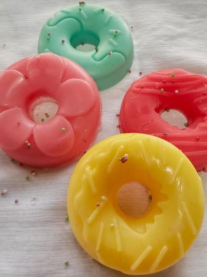 Make bath time exciting with my collection of kid-friendly soaps. Made with a gentle goat milk base, these soaps come in fun shapes like donuts, popsicles, and waffles, and can even be personalized with names for birthday return gifts.