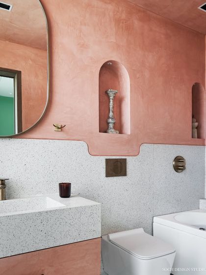 We create sophisticated bathroom spaces that blend Japandi-inspired aesthetics with practical functionality. Our designs incorporate sustainable materials like terrazzo and micro-concrete, chosen specifically for their water-resistant properties and modern appeal.