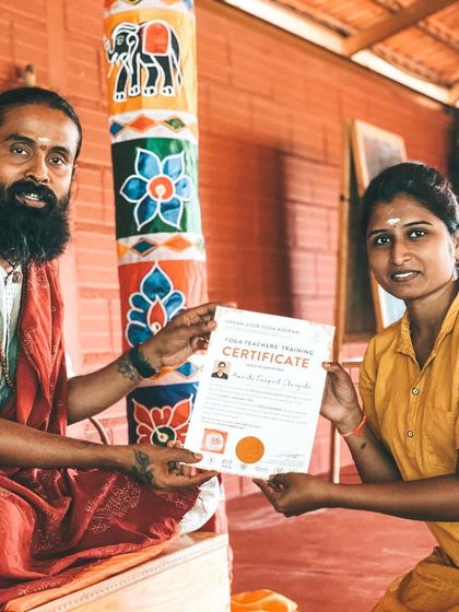 We offer a 200-hour residential yoga teacher training where you live at our ashram, learn Hatha, Vinyasa, and Ashtanga basics, practice daily meditation and pranayama, and get hands-on teaching experience in a supportive, non-competitive setting.