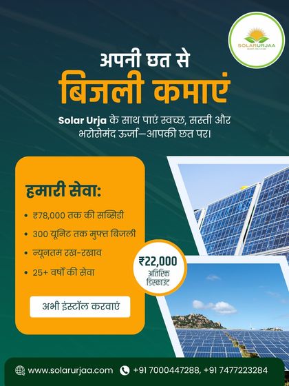 Log bijli ke bill se pareshaan rehte hain, har mahine paanch hazaar! Power cut ki alag tension. Isi wajah se humne Solarurjaa shuru kiya, taki swaach aur sasti urja har kisi ke ghar pohche. Hum sirf solar installer nahi, hum poora support dete hain—consultation se lekar subsidy ka paperwork, installation ke baad cleaning aur maintenance bhi. Gwalior, Indore, Delhi, Bhopal—humari team har jagah hai. Hum maante hain ki aapki chhat hi aapka savings account ban sakti hai.