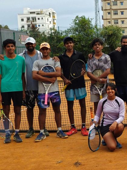 We’re Sol Sports. Started by me, Suraj Bikkannavar, with one simple idea - tennis is more than just a game, it’s family. Years coaching, from local courts to the Karnataka Women’s team, taught me: grit beats technique alone. Our proudest wins? Not just medals, but moments like when our trainee Poojya aced her board exams. Parents, kids, everyone’s part of our Sol Sports family. We play, we celebrate, we grow together.