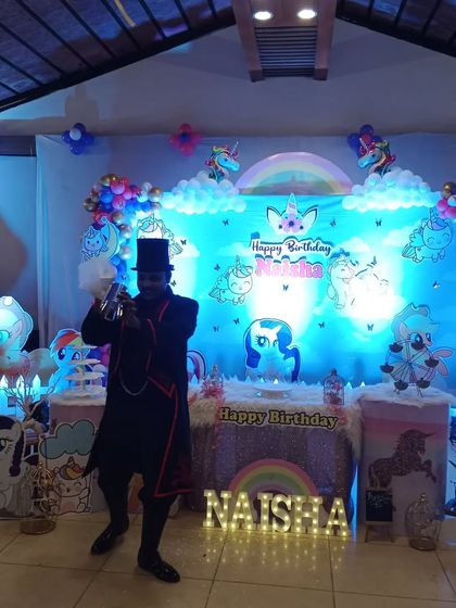 I bring high-energy magic shows to birthdays and private parties, packed with laughter, bright props, and real moments of surprise. The vibe is classic magician, but with loads of heart and that desi touch - you’ll hear me say “Adbhuta!” (Amazing!) when the crowd lights up.